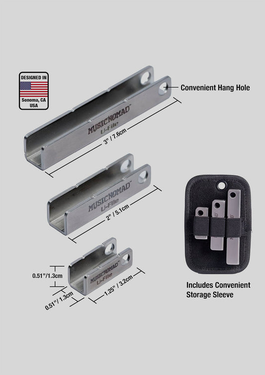 Nivelador de trastes single Set de 3 (1.25”, 2”, 3”) MusicNomad Fret Leveler - Diamond U-File for Leveling Single Guitar Frets -