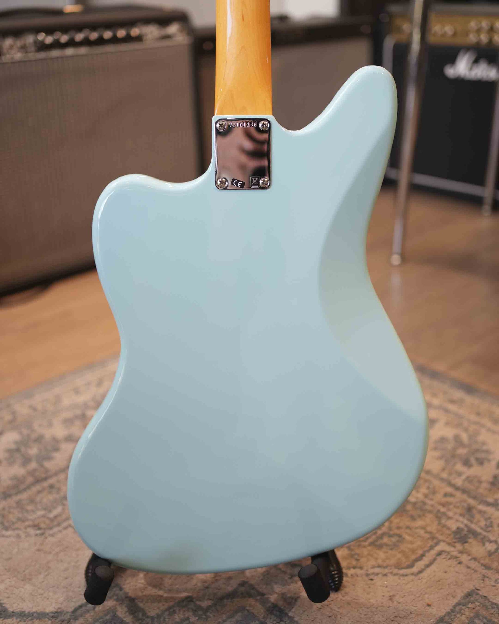 Equipada con las cápsulas Pure Vintage ’65 Jaguar Single-Coil, este modelo produce un tono característico, brillante y dinámico, con un enfoque en las frecuencias medias y agudas, perfecto para géneros como el surf rock, indie, y alternativa. Su sonido es claro, con una excelente definición y un ataque preciso.