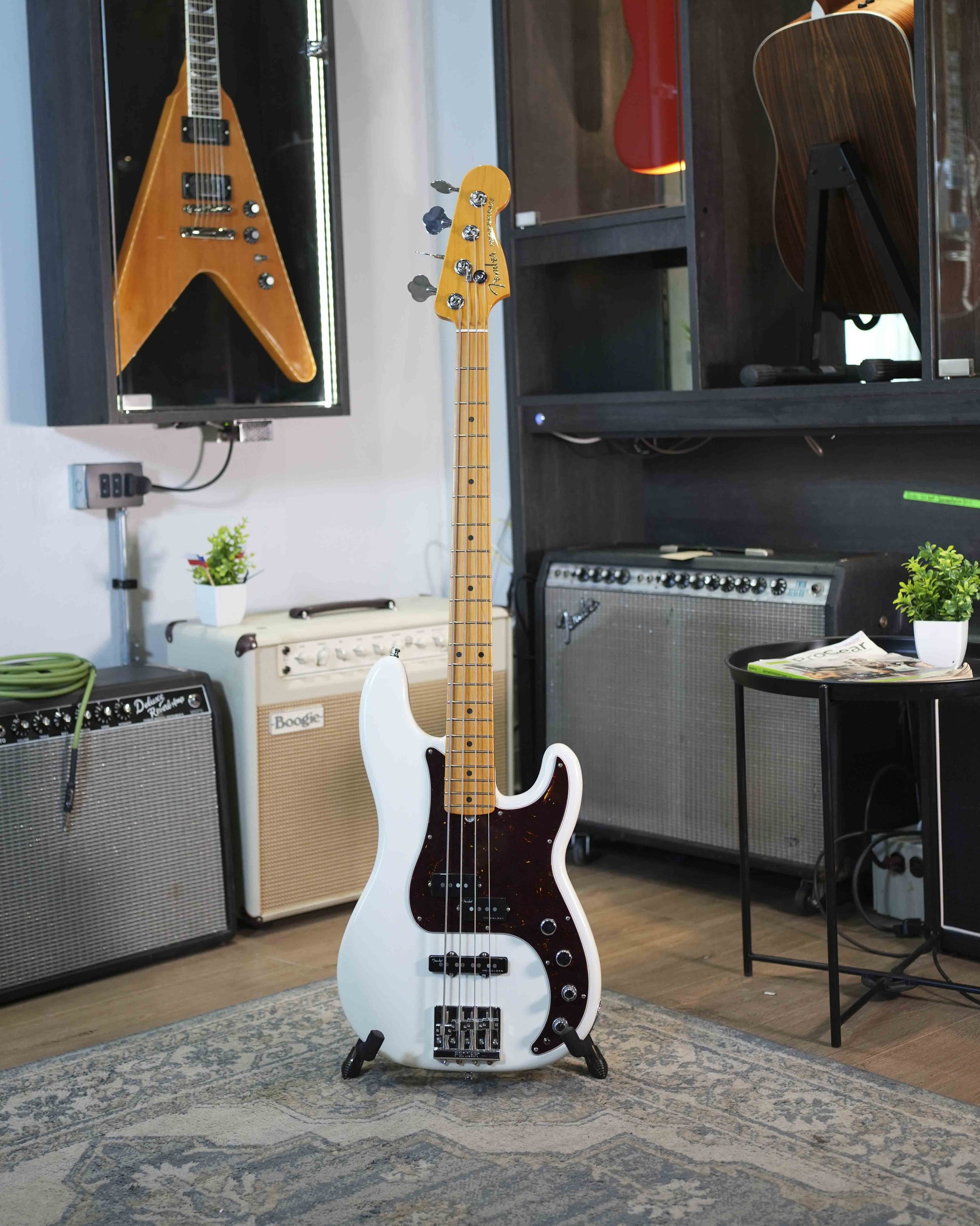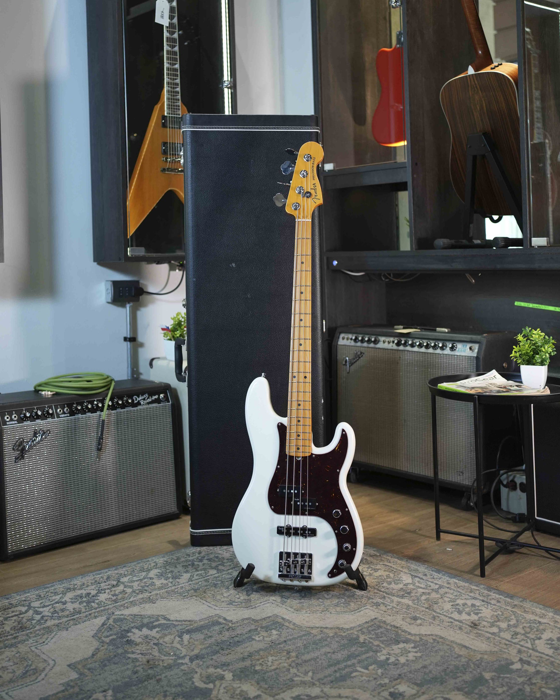 • Misceláneos: Controles de volumen y tono activo/pasivo, EQ activo de 3 bandas, incluye funda.