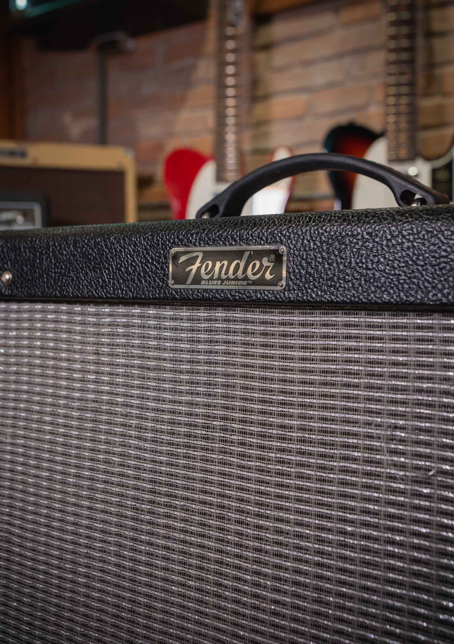 Amplificador Fender Blues Junior III en color negro del año 2010 usado en excelente estado ideal para guitarristas que buscan un sonido cálido y auténtico con 15W de potencia y reverb a muelles perfecto para ensayos y presentaciones en vivo