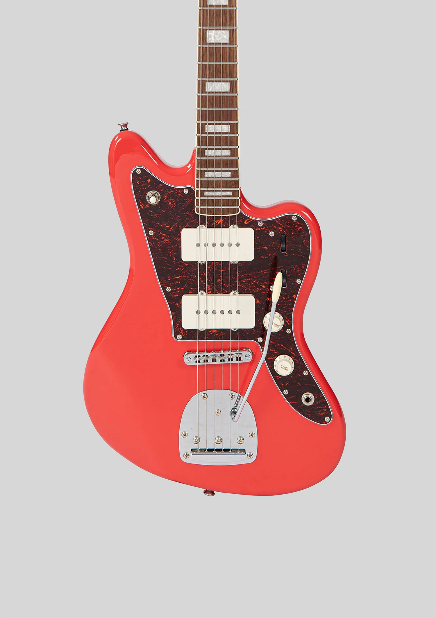 Guitarra eléctrica offset con cápsulas P90, acabado Firenza Red. Sonido brillante, definido y estilo vintage alternativo.