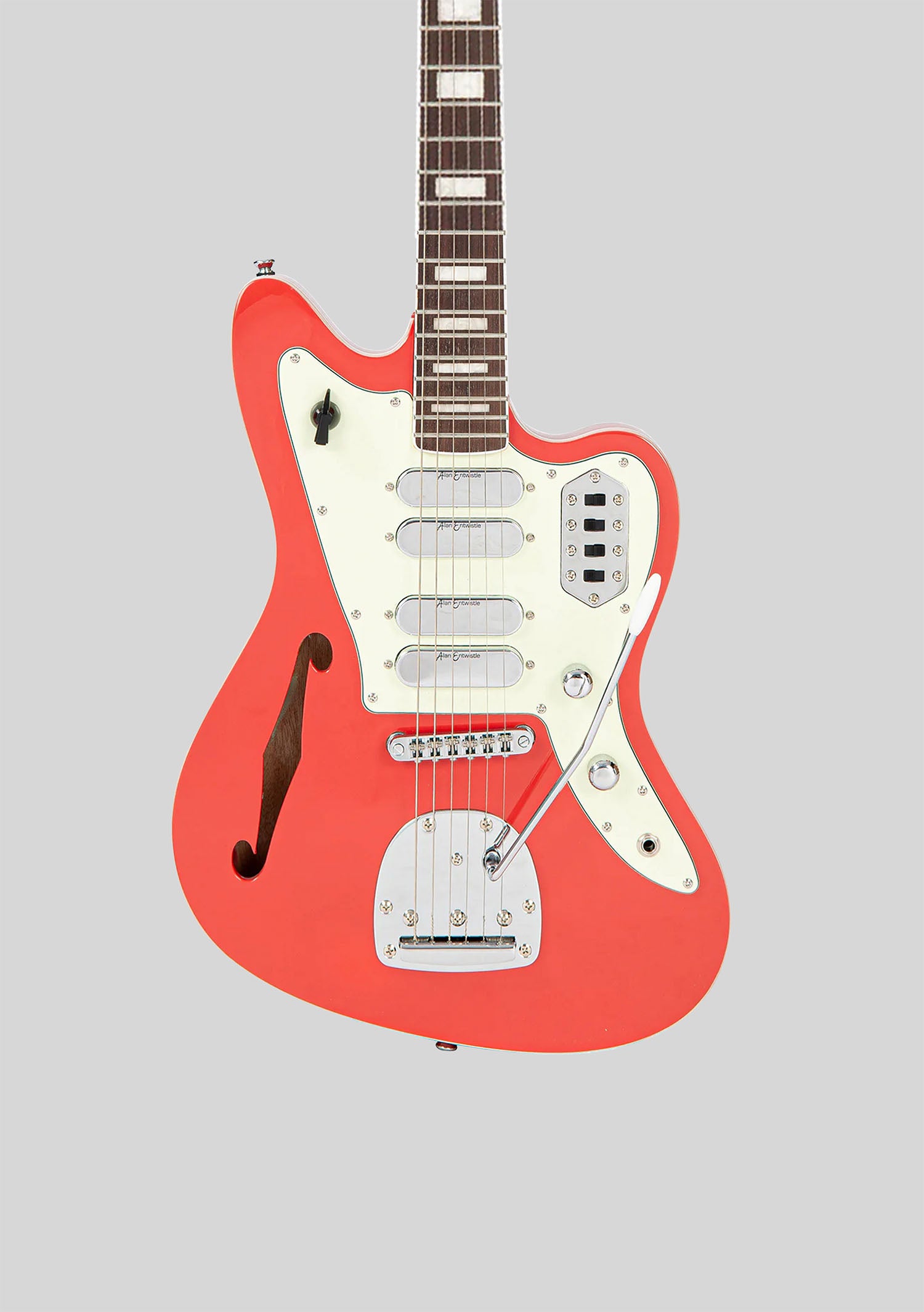 Guitarra offset equipada con cuatro cápsulas single coil para amplia gama tonal. Acabado Firenza Red, sonido brillante y definido.