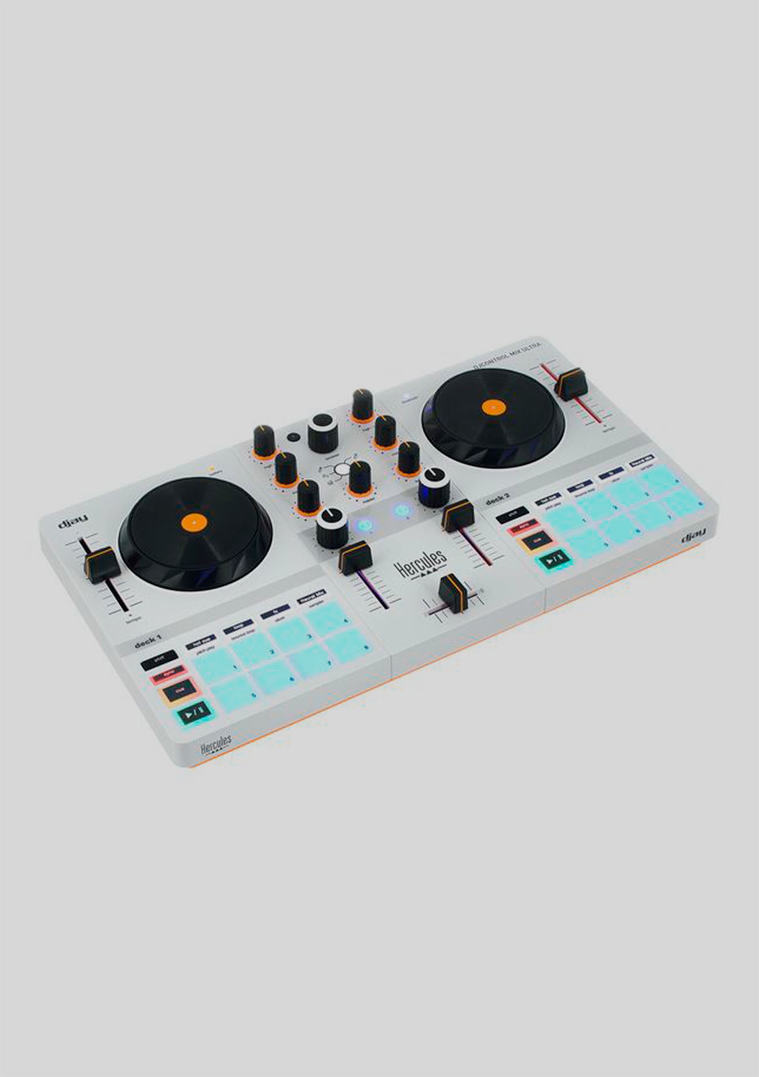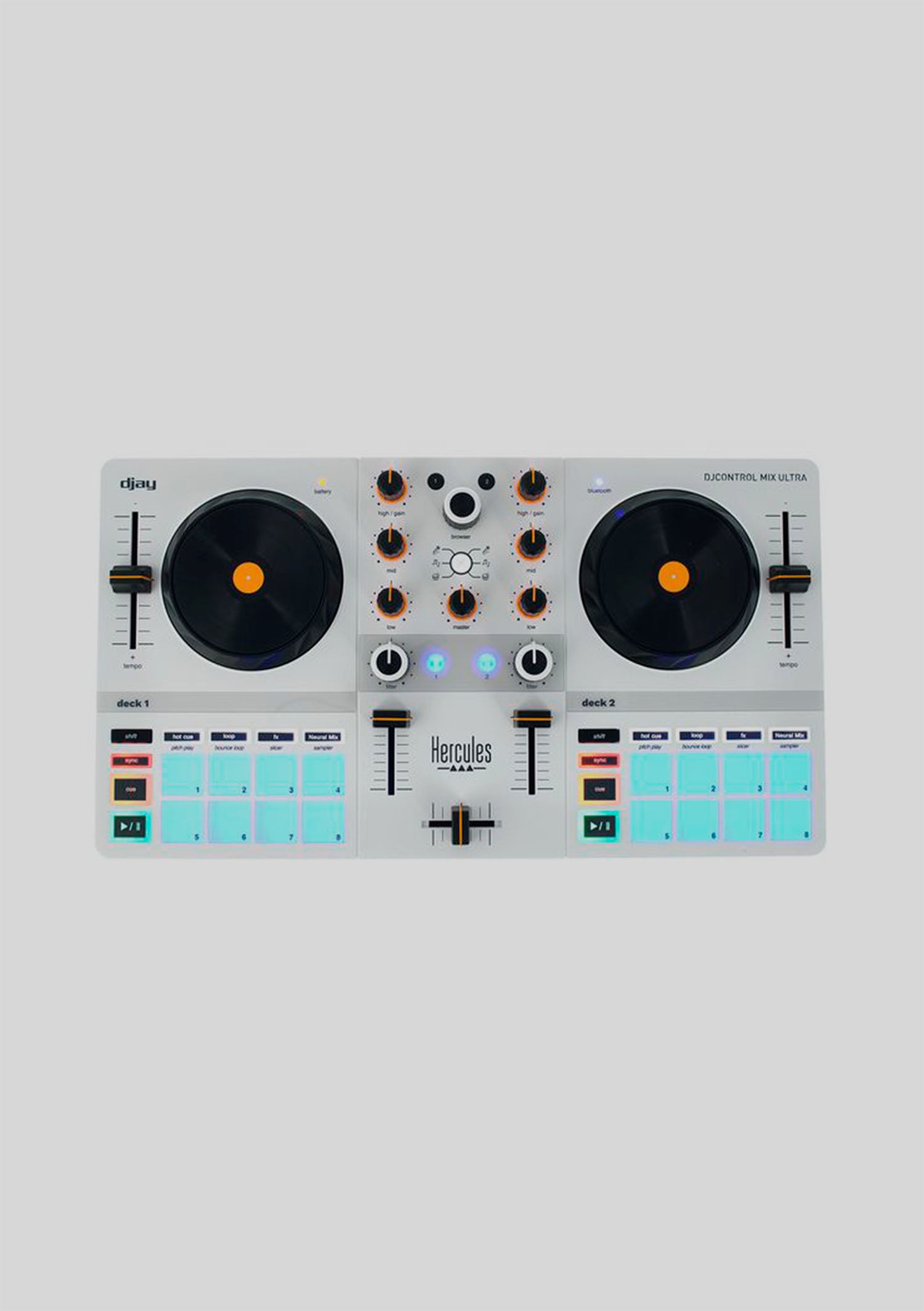 El Hercules MIX Ultra inalámbrico es un controlador DJ compacto y portátil ideal para llevar tu música a cualquier lugar Su conexión Bluetooth y su batería recargable te permiten mezclar sin cables hasta 8 horas Ofrece jog wheels precisos y funciones profesionales perfectas para principiantes y DJ móviles