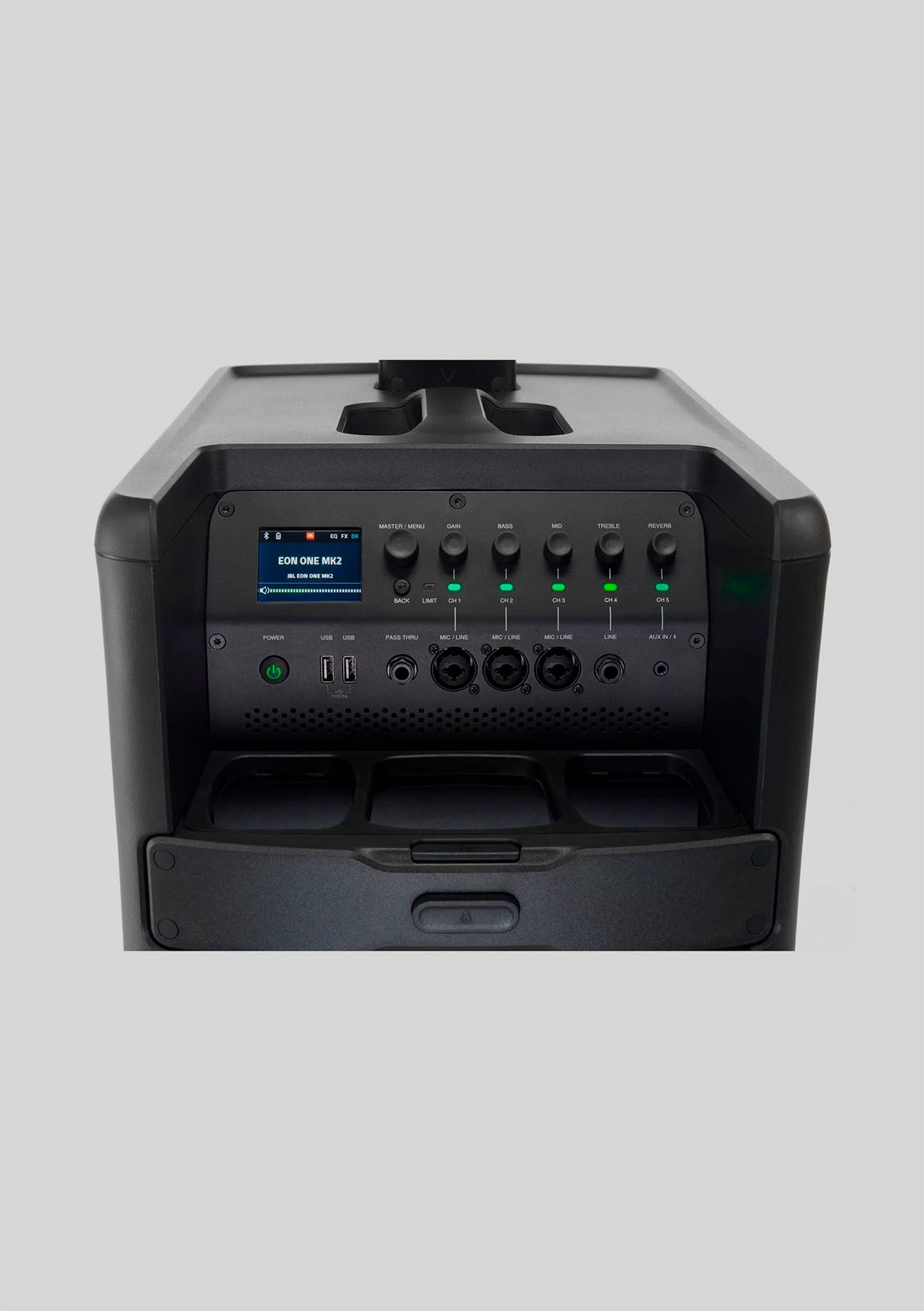 El JBL EON ONE Mk2 es un sistema line array portátil que combina potencia y claridad en un diseño compacto fácil de transportar, ideal para presentaciones en vivo, eventos o DJ, ofreciendo un audio envolvente con su mezclador digital integrado y batería recargable para máxima versatilidad.