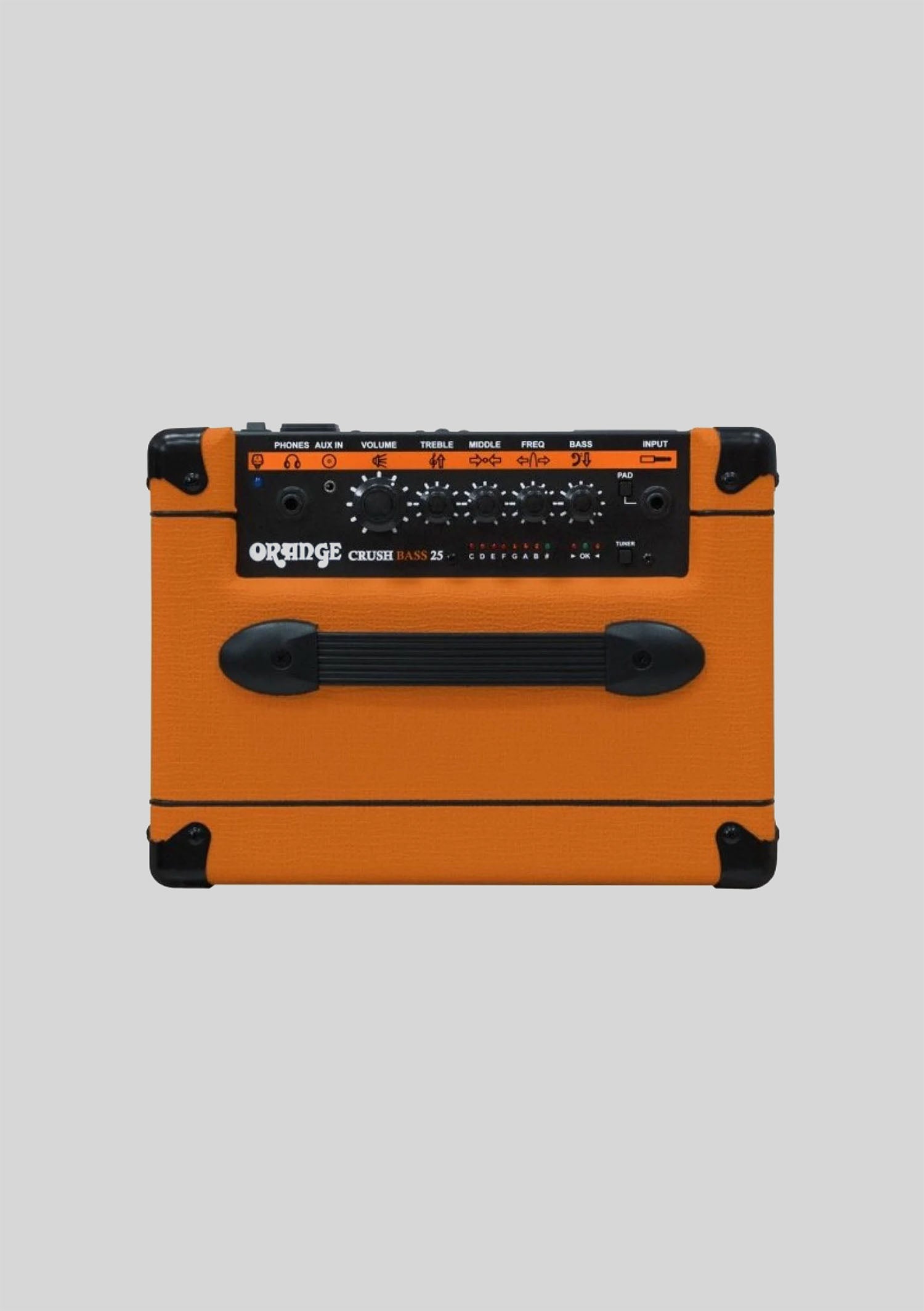 Disfruta de tonos potentes y dinámicos en un diseño compacto con el Orange Crush Bass 25 Combo ideal para ensayar en casa y sesiones de grabación gracias a su ecualizador activo, entrada auxiliar y salida para audífonos ofreciendo versatilidad y calidad sonora en un solo equipo